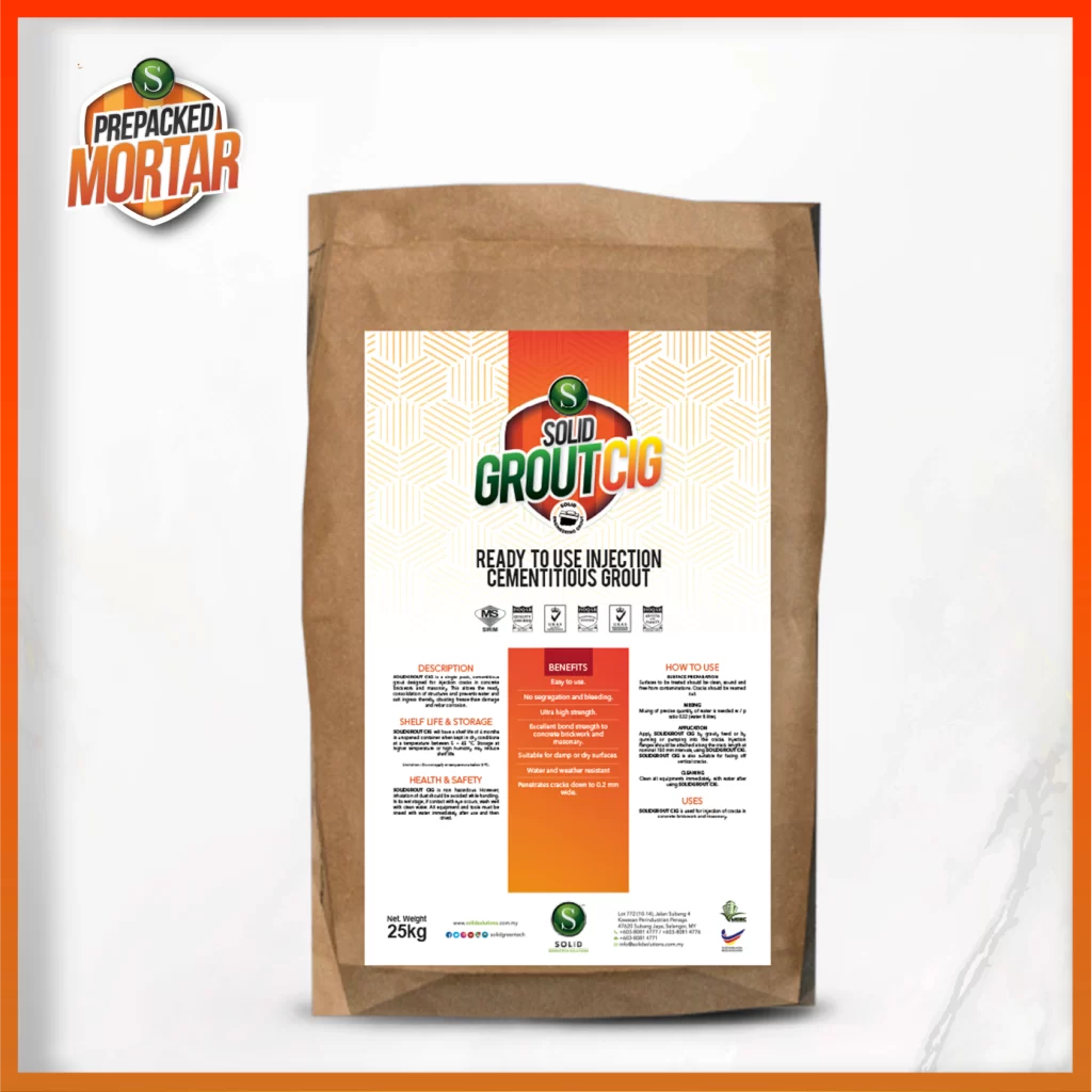 SOLIDGROUT CIG is a single pack, cementitious grout designed for injection cracks in concrete brickwork and masonary. This allows the ready consolidation of structures and prevents water and salt ingress thereby obvating freeze-thaw damage and rebar corrosion.